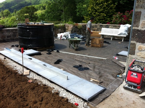 Création d’une terrasse en dalles sur plots et pose d’un bain norvégien: